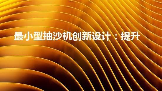 最小型抽沙機創新設計:提升效率的抽沙設備如何改變產業格局?