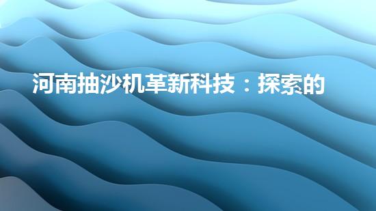 河南抽沙機革新科技:探索的未來?